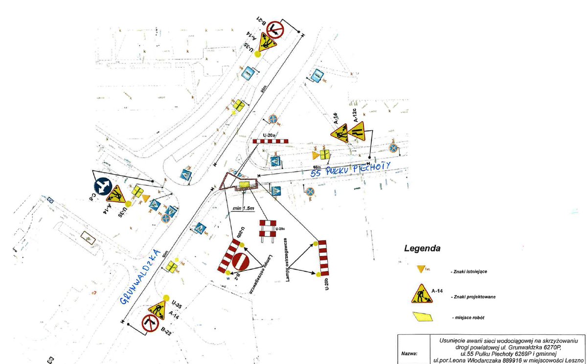 W związku z awarią na sieci wodociągowej, wjazd na ul. 55 Pułku Piechoty od strony ul. Grunwaldzkiej jest chwilowo niemożliwy. Utrudnienia mogą potrwać do 15 października.