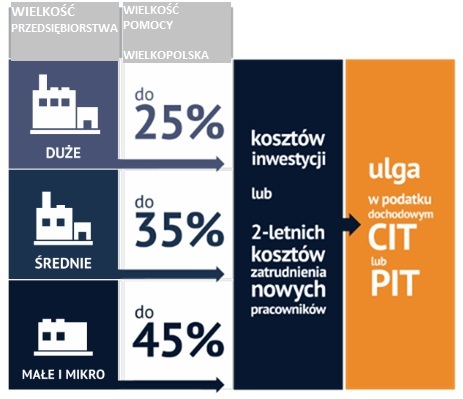 Za koszty kwalifikowane związane z tworzeniem nowych miejsc pracy uznaje się dwuletnie koszty pracy nowo zatrudnionych pracowników (po wydaniu zezwolenia) w związku z realizacją inwestycji. Wydatki obejmują koszty pracy brutto pracowników powiększone o obowiązkowe składki na ubezpieczenie społeczne. Ponadto nowo utworzone miejsca pracy muszą być utrzymane przez okres 5 lat (duże przedsiębiorstwa) lub 3 lata (MŚP).